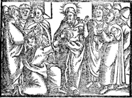 Description: Thomas touches the wound in Jesus' side after doubting his resurrection.
