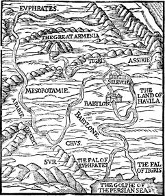 Description: A map depicting the location of the Garden of Eden between the Tigris and Euphrates Rivers.