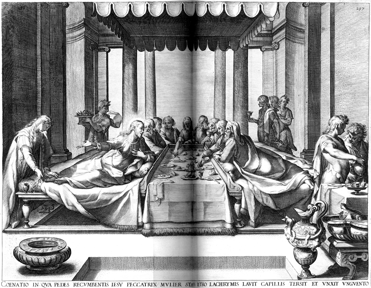 Description: Jesus is anointed by a sinful woman in the house of Simon the Pharisee.
