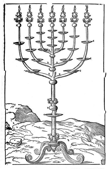 Description: Lampstand with branches and seven bowls made to look like almond blossoms.