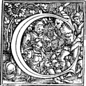 Description: This initial letter C depicts Delilah cutting Samson’s hair, as the Philistines wait to seize him.