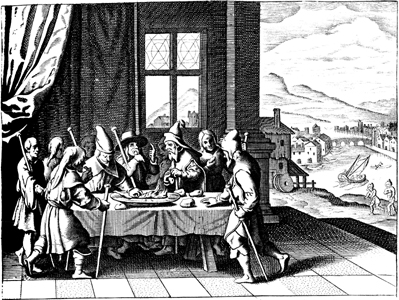 Description: Standing around the table with staffs in hand, Israelites eat the Passover meal.
