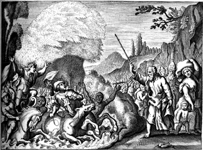 Description: As Moses and Israel stand safely on the shore, Pharaoh's army is drowned in the Red (Reed) Sea.