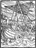 Description: A skeleton, representing death, climbs the broken mast of a sinking ship as the sailor panics. The 41 images of Hans Holbein's "The Dance of Death" (Lyon, 1538) were cut by Hans Luetzelburger and here appear in the 1542 Latin edition of the work.