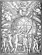 Description: Jesus sits on the earth, surrounded by a cloud of witnesses, for the last judgment. The 41 images of Hans Holbein's "The Dance of Death" (Lyon, 1538) were cut by Hans Luetzelburger and here appear in the 1542 Latin edition of the work.