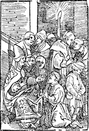 Description: A bishop confirms those brought to him, illustrating the sacrament of confirmation.