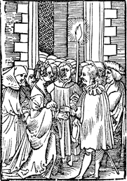Description: The wedding of a man and woman illustrates the sacrament of marriage.
