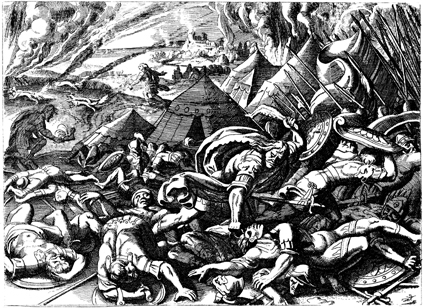 Description: Samson slays 1,000 Philistines with the jawbone of an ass.
