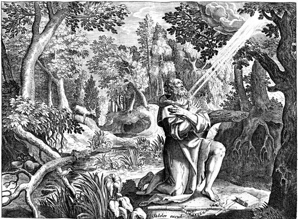 Description: Saint Apollonius was an Egyptian monk of the fourth century, who was martyred with Philemon. The artist responsible for the design was Maarten De Vos, but the engraving for the volume was done by Johannes Sadeler I (Jan Sadeler) and Raphael Sadeler I, whose surname is at the lower center.
