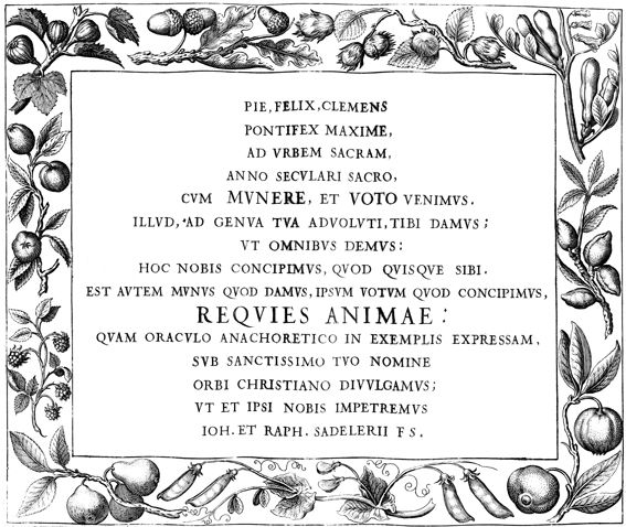 Description: This image comes from “Oraculum Anachoreticum,” dated 1600, bound with “Solitudo, sive, Vitae patrum eremicolarum”. This decorative page-border features various fruits and nuts.