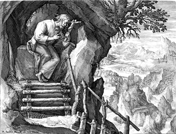 Description: This image comes from “Sylvae Sacrae,” dated 1594, bound with “Solitudo, sive, Vitae patrum eremicolarum”. Saint Chariton (3rd century) was abducted and taken to a cave while on a pilgrimage to Jerusalem. When his captors mysteriously died, he decided to stay in the cave as a hermit.The names of the artist responsible for the design, Maarten De Vos, and the engraver, Raphael Sadeler I, are at the lower left.