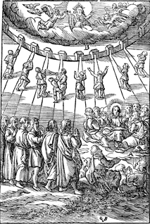 Description: Jesus teaches with the Beatitudes the pure of heart are able to see God in heaven, each through the heavenly door. Includes the monogram of the woodcutter, Christoffel van Sichem II (1577-1658); his son, Christoffel van Sichem III (1618-1659), may have collaborated with him on these images.