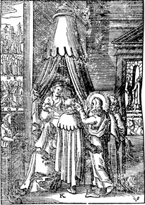 Description: Jesus raises Jairus' daughter from the dead. In the background Jesus heals the woman with the issue of blood and others. Includes the monogram of the woodcutter, Christoffel van Sichem II (1577-1658) in the bottom right corner; his son, Christoffel van Sichem III (1618-1659), may have collaborated with him on these images.