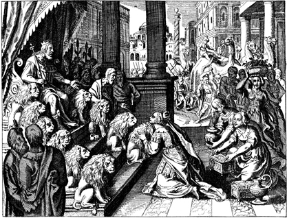 Description: The Queen of Sheba visits King Solomon in Jerusalem.