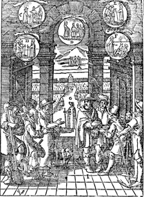 Description: The position of the sun denotes time B) - F). The landowner B) Recruits laborers at daybreak, C) Again at third hour, D) At the sixth hour, and E) The eleventh hour. Includes the monogram of the woodcutter, Christoffel van Sichem II (1577-1658); his son, Christoffel van Sichem III (1618-1659), may have collaborated with him on these images.