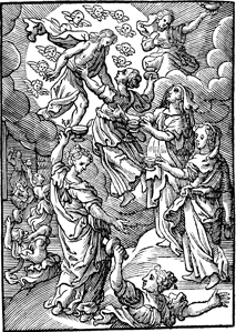 Description: Jesus greets the five wise virgins in a heavenly celebration of his coming, as the five foolish virgins run to purchase more oil. Includes the monogram of the woodcutter, Christoffel van Sichem II (1577-1658); his son, Christoffel van Sichem III (1618-1659), may have collaborated with him on these images.