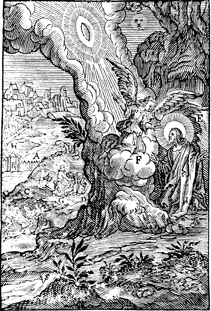Description: In background, Jesus tells Peter and the disciples to wait. Then Jesus goes to Gethsemane where an angel speaks to Him. Includes the monogram of the woodcutter, Christoffel van Sichem II (1577-1658); his son, Christoffel van Sichem III (1618-1659), may have collaborated with him on these images.