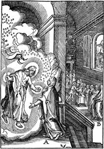 Description: The resurrected Jesus appears to Mary. Includes the monogram of the woodcutter, Christoffel van Sichem II (1577-1658); his son, Christoffel van Sichem III (1618-1659), may have collaborated with him on these images. This image also includes an engraver’s knife at the base.