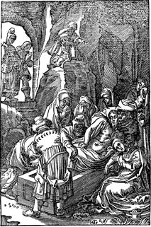 Description: Joseph of Arimathea places Jesus' body in his own tomb. Includes the monogram of the woodcutter, Christoffel van Sichem II (1577-1658); his son, Christoffel van Sichem III (1618-1659), may have collaborated with him on these images. This image also includes the engraver's initials (HG) at the base.