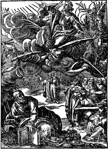 Description: Jesus is carried up into heaven. The monogram of the artist, Christoffel van Sichem (1546-1624), is located in the upper left corner of the image.