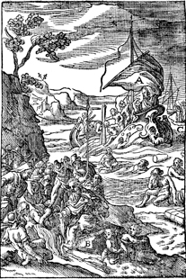 Description: Paul is bitten by a viper on the island of Malta after his boat is shipwrecked. Includes the monogram of the woodcutter, Christoffel van Sichem II (1577-1658); his son, Christoffel van Sichem III (1618-1659), may have collaborated with him on these images, near the top left corner.