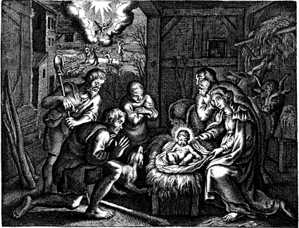 Description: Shepherds visit the newborn Jesus after learning of his birth from an angel.