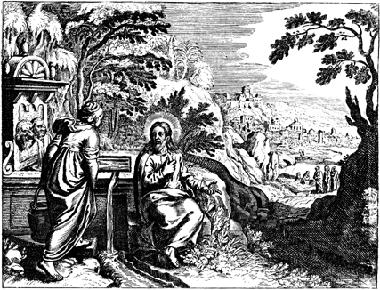 Description: Jesus speaks with the Samaritan woman at the well in Sychar.