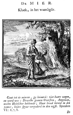 Description: Two persons regard an ant hill next to a large tree. The Dutch artist and poet Jan Luiken (1649-1712), whose initials are at the lower right, was responsible for drawing and etching this emblem, as well as for the poem that accompanies it (below).