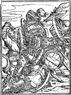 Description: In the form of two skeletons, Death violently takes apart a wagon full of wine barrels while the waggoner looks on in distress. The 54 images of Hans Holbein's "The Dance of Death" (Lyon, 1538) were cut by Hans Luetzelburger and here appear in the 1547 Latin edition of the work.