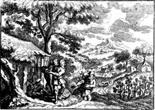 Description: Ham dishonors Noah by pointing out his nakedness, but Shem and Japheth cover their father with a sheet.