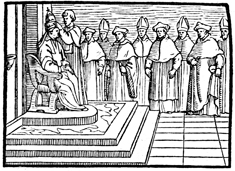Description: Cardinal bishops observe the coronation of the pope.