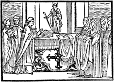 Description: This engraving is the second of nine illustrating the blessing and consecration of a virgin. In a series of prayers, the bishop blesses the various pieces of clothing that make up the habit. Here, the virgins stand before the bishop, having taken off their secular clothing and donned part of the habit. They carry the rest of the habit in their arms as the bishop performs the blessing.
