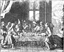 Description: Standing around the table with staffs in hand, Israelites eat the Passover meal.