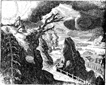 Description: With Israel in the background, God speaks to Moses from a cloud of smoke and fire at Mt. Sinai.