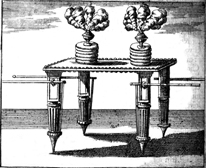 Description: The table of acacia wood made as a place to set the bread of the presence, and to set the plates and dishes for incense and the flagons and bowls for drink offerings.