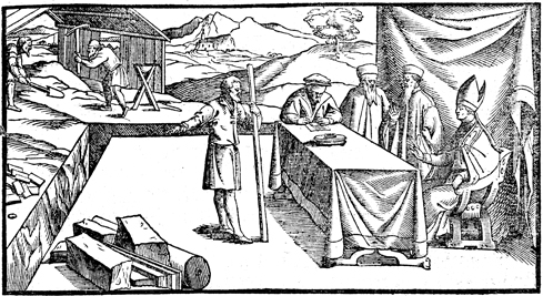 Description: This engraving is the first of five illustrating the blessing and placing of the first stone of a new church building. The bishop, seated under a tent, is speaking to the architect of the building.
