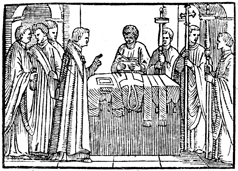 Description: The bishop blesses the priestly vestments, then sprinkles them with holy water.
