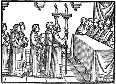 Description: Holy Thursday blessing oil procession bishop vessels chrism catechumens Web description: This is the third of four engravings illustrating the blessing of several holy oils on Holy Thursday. A procession of priests, deacons and sub-deacons approaches the bishop with vessels containing the Chrism and oil of Catechumens.