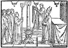 Description: On Holy Saturday, a deacon lights one candle from three and sings, “Lumen Christi”(the light of Christ), to which all reply,”Deo gratis” (“thanks be to God”).