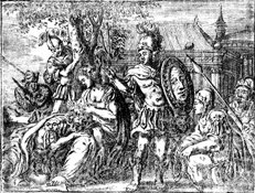Description: Delilah cuts Samson’s hair, as the Philistines wait to seize him.