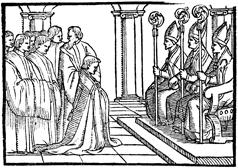 Description: At the time of vespers on the Saturday before the Sunday on which a priest will be consecrated a bishop, he is questioned by at least three bishops in the presence of other priests in the courtyard of the church.