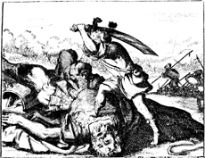 Description: David cuts off Goliath's head with the giant’s sword after felling him with a sling.