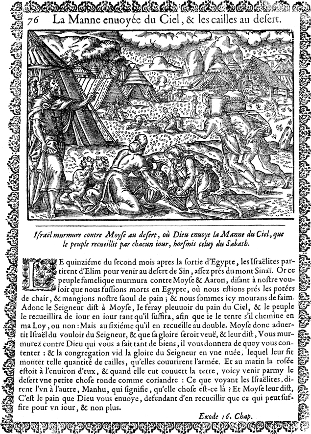 Description: The Israelites gather manna as it falls from heaven.