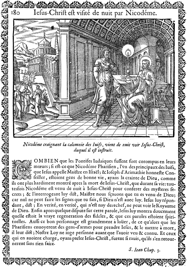 Description: Jesus converses with Nicodemus at night.