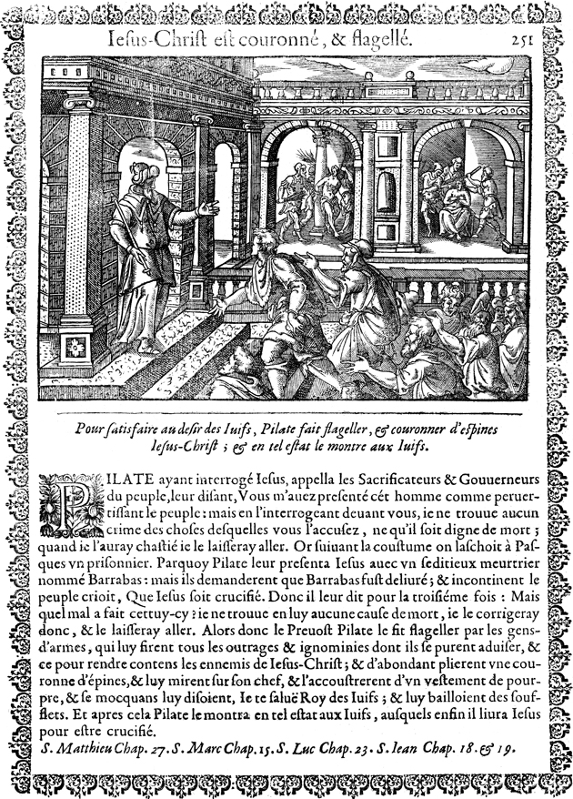 Description: Guards flog Jesus and place a crown of thorns on his head.
