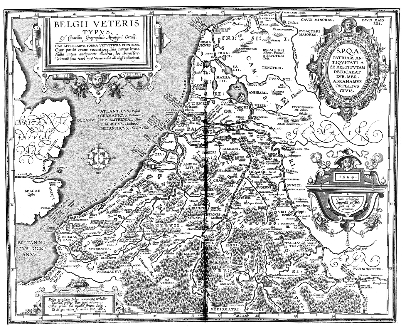 Description: A map of Belgium and the surrounding area. The four lines of Latin poetry on the lower left cartouche were written by Ortelius’ friend, Favolius.