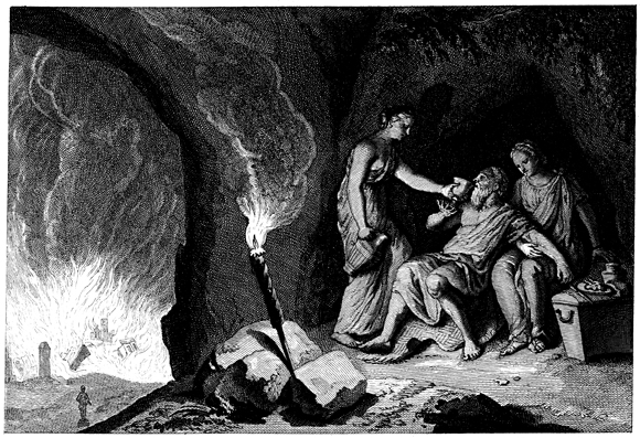 Description: This engraving, by Gerhard Hoet (1648-1733) and A. de Blois, depicts Lot’s daughters seducing him after getting him drunk, while Sodom and Gomorrah burns (background). In the distance, Lot’s wife has now become a pillar of salt after looking back toward the cities.