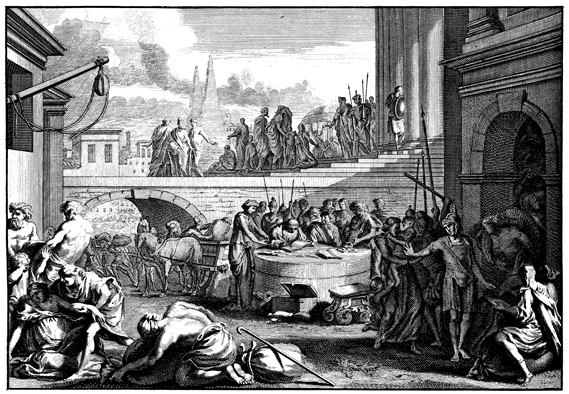 Description: During Egypt’s seven years of plenty, Joseph makes preparations for the seven years of famine by collecting and storing the surplus. The artist’s signature (Jan Goeree, 1670-1731) is located at the lower left corner.