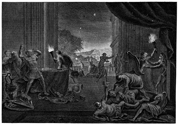 Description: This engraving, by Jan Goeree (1670-1731) and Jan Baptist (1670-1731), depicts a plague of intense darkness covering Pharaoh’s house and all the land of Egypt for three days.