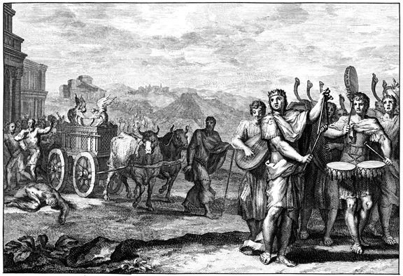 Description: As David brings the ark of God into Jerusalem on a cart driven by oxen, Uzzah touched the ark to steady it; as a result, the Lord struck down Uzzah, and David was angry and afraid to keep the ark. The artist’s signature (Otto Elliger) is located at the lower left corner, and the engraver’s (H. Elant) at the lower right.